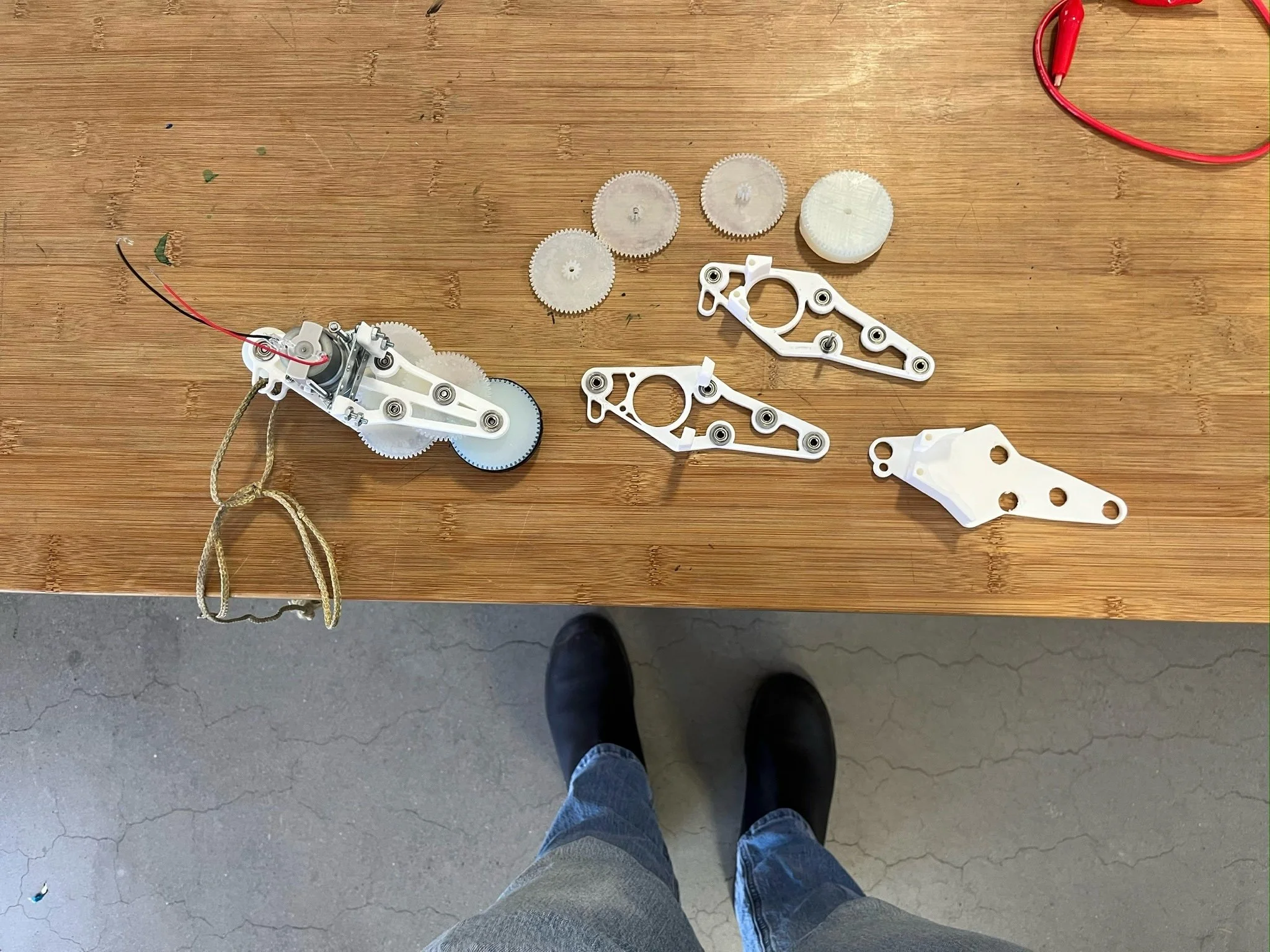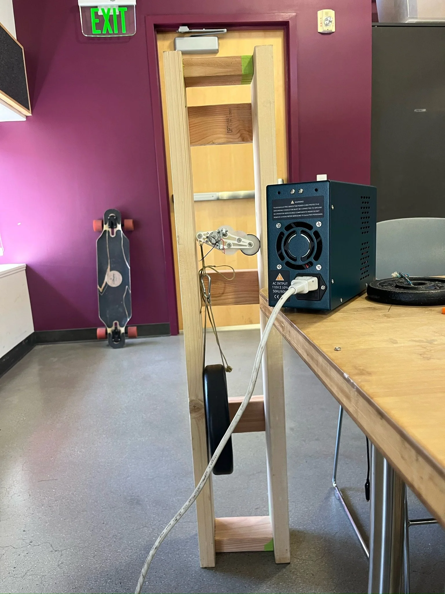 A mass-efficient robot capable of lifting a payload vertically upward while wedged between two wooden planks. Constructed with an electric motor, compound gears, bearings, and a mass-efficient chassis.